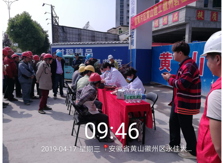 2019年4月17日上午9時,黃山建工集團承建的徽州碧桂園德源項目工程東大門,人聲鼎沸、歡聲笑語,每個人臉上都洋溢著幸福的笑容,他們排著隊,有組織、有秩序地參加由碧桂園德源工程施工項目部組織的“關愛健康、免費體檢”活動。此次體檢活動邀請了屯溪同仁門診部的四名醫(yī)生,分科體檢,對每位職工的心率、血壓、外科、口腔等做了細致的檢查,并做好體檢記錄,同時對工友們關心的日常生活問題、常識做了解答和溫馨提示,此次項目部參加體檢人員惠及95名。本次活動是為了增強員工關懷,保障員工身體健康,營造”平安、和諧、幸福、美麗”的示范工地。