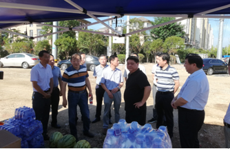 烈日下的八一大橋項(xiàng)目現(xiàn)場(chǎng)一片繁忙景象,工人們有的在支模、有的在焊接鋼筋、有的在澆筑砼,一切都井然有序,忙而不亂。屯溪區(qū)區(qū)委書記江善良一行一到現(xiàn)場(chǎng),就將一件件防暑降溫慰問品遞到在施工的工人們手中,并囑咐在高溫下施工的操作人員要多注意休息、及時(shí)補(bǔ)充水分和營(yíng)養(yǎng),按項(xiàng)目部要求合理安排工作時(shí)間,避免中午高溫時(shí)間段施工,同時(shí)要求項(xiàng)目部積極做好防暑降溫工作,保障施工一線工人的生命安全。充分體現(xiàn)了屯溪區(qū)委、區(qū)政府等領(lǐng)導(dǎo)對(duì)我集團(tuán)公司的一片深情厚誼和關(guān)懷。
