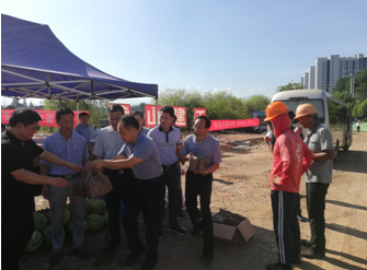二〇一九年八月二日上午,黃山市屯溪區(qū)區(qū)委書記江善良率區(qū)四大班子及相關(guān)部門領(lǐng)導(dǎo)冒著酷暑,頂著驕陽(yáng),風(fēng)塵仆仆親赴黃山市建工集團(tuán)正在緊張施工中的黃山市重點(diǎn)工程項(xiàng)目八一大橋項(xiàng)目現(xiàn)場(chǎng)“送清涼”。