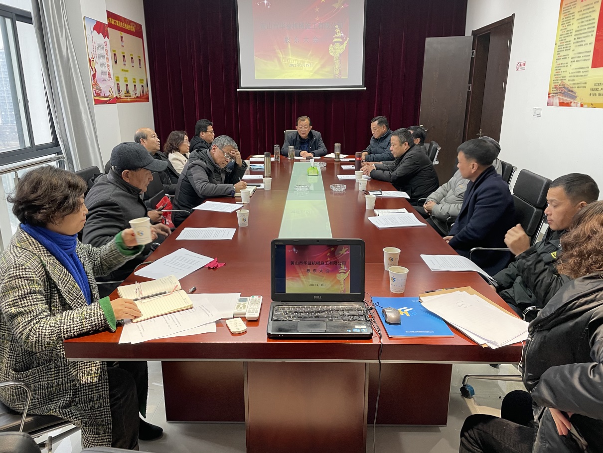 元月25日下午3時(shí),黃山市華益機(jī)械施工有限公司2021年股東會(huì)在黃山建工集團(tuán)十一樓會(huì)議室勝利召開,黃山建工集團(tuán)董事長(zhǎng)項(xiàng)端陽和14名自然人股東參加會(huì)議,監(jiān)事汪秀華列席了本次會(huì)議,會(huì)議由項(xiàng)端陽同志主持。
