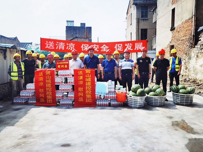 烈日炎炎,氣溫居高不下。為保障項(xiàng)目職工安全健康權(quán)益,確保項(xiàng)目安全生產(chǎn)平穩(wěn)推進(jìn),8月10日上午,黃山城投城建控股有限公司總經(jīng)理汪國文等一行赴寧國市河瀝文化街區(qū)EPC項(xiàng)目工地開展走訪調(diào)研暨“夏送清涼”慰問活動(dòng)。黃山建工集團(tuán)股份有限公司董事長項(xiàng)端陽、總經(jīng)理葉金發(fā)、副總經(jīng)理吳學(xué)武陪同調(diào)研慰問。