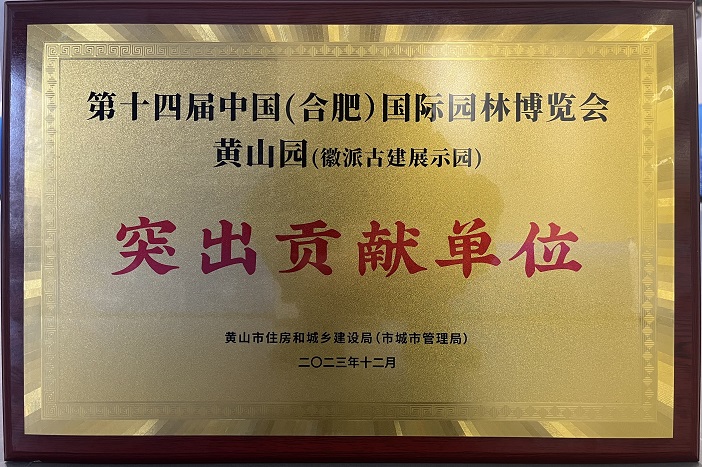 12月18日下午,中國(黃山)第三屆徽派古建產(chǎn)業(yè)發(fā)展大會古建產(chǎn)業(yè)高質(zhì)量發(fā)展推進會·新安茶會舉行。推進會上頒發(fā)了第十四屆中國(合肥)國際園林博覽會黃山園(徽派古建展示園)“突出貢獻(xiàn)單位”獎項,作為黃山園項目參建單位之一的黃山建工集團再獲殊榮。