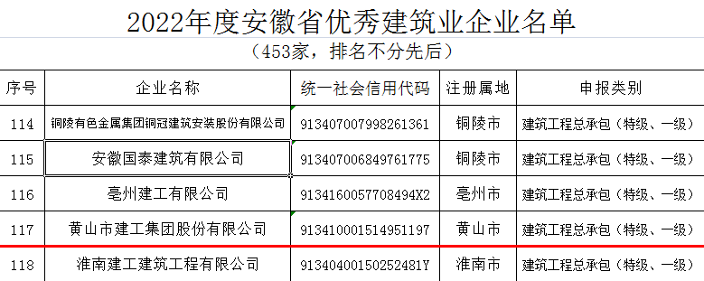 近日,安徽省住房和城鄉(xiāng)建設(shè)廳發(fā)布了“2022年度安徽省優(yōu)秀建筑業(yè)企業(yè)”名單,黃山建工集團(tuán)憑借企業(yè)經(jīng)營(yíng)發(fā)展、管理創(chuàng)新能力、企業(yè)建造能力、企業(yè)文化建設(shè)、社會(huì)責(zé)任履行等方面的卓越表現(xiàn)再次名列榜單――建筑工程總承包類(特級(jí)、一級(jí)類別)省優(yōu)秀建筑業(yè)企業(yè),連續(xù)多年斬獲該項(xiàng)殊榮。